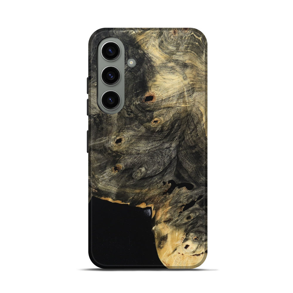 Our Live Edge cases are made from an amazing combination of stabilized wood burl and colored resin. Our stabilization process hardens the wood to protect against cracks and breaks. We do every step of the process at our shop in Northern Indiana. Perfectly fits the Galaxy S24.