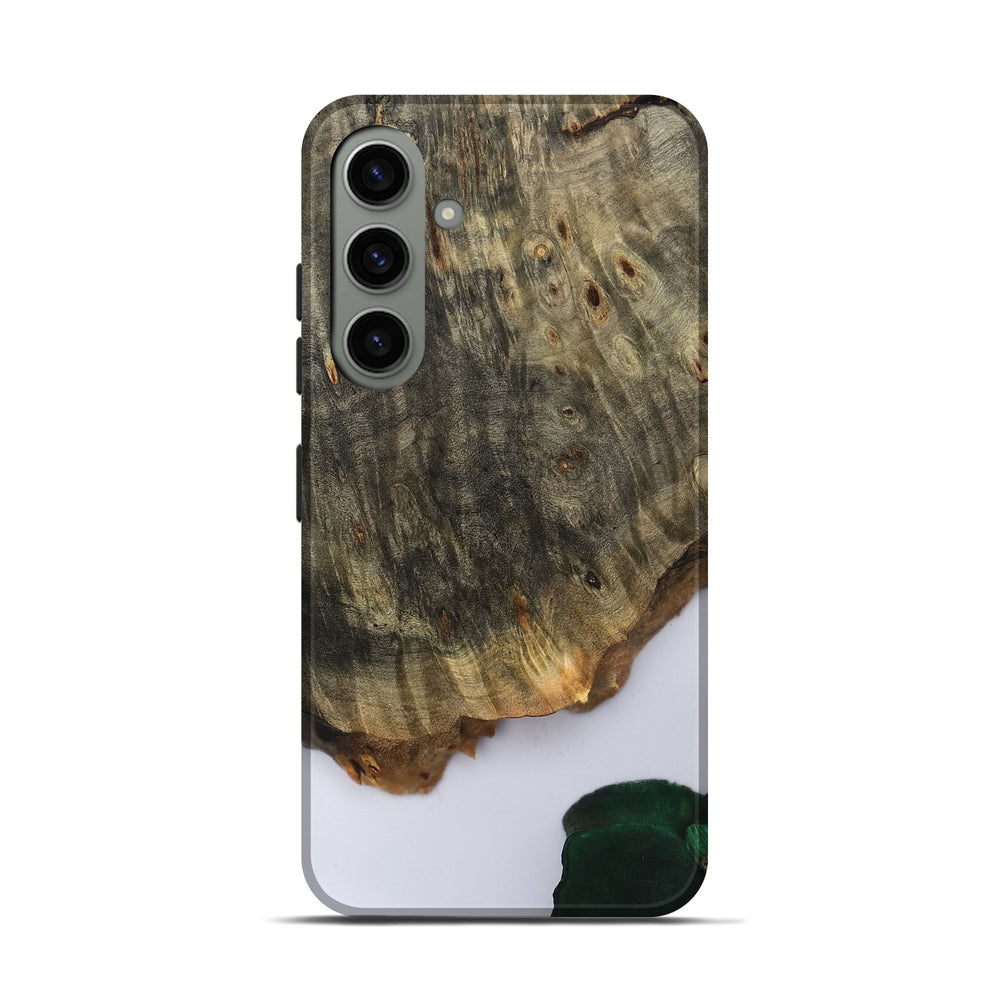Our Live Edge cases are made from an amazing combination of stabilized wood burl and colored resin. Our stabilization process hardens the wood to protect against cracks and breaks. We do every step of the process at our shop in Northern Indiana. Perfectly fits the Galaxy S24.