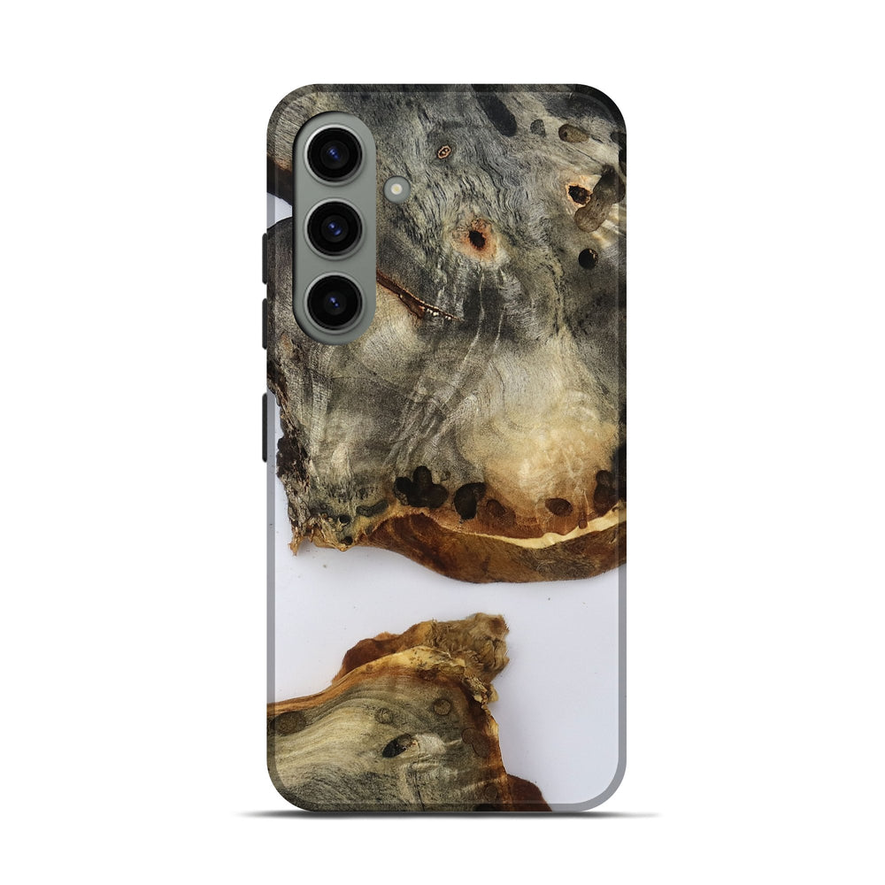Our Live Edge cases are made from an amazing combination of stabilized wood burl and colored resin. Our stabilization process hardens the wood to protect against cracks and breaks. We do every step of the process at our shop in Northern Indiana. Perfectly fits the Galaxy S24.
