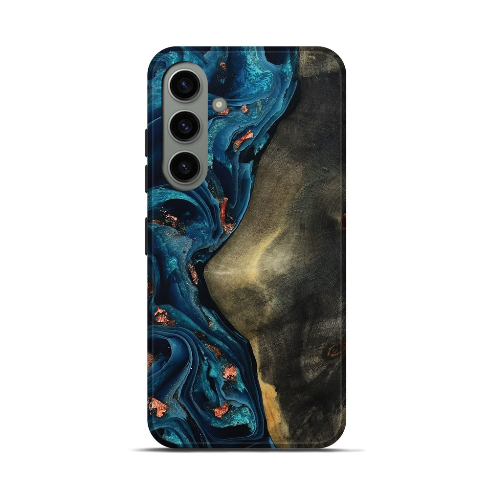 Our Live Edge cases are made from an amazing combination of stabilized wood burl and colored resin. Our stabilization process hardens the wood to protect against cracks and breaks. We do every step of the process at our shop in Northern Indiana. Perfectly fits the Galaxy S24.