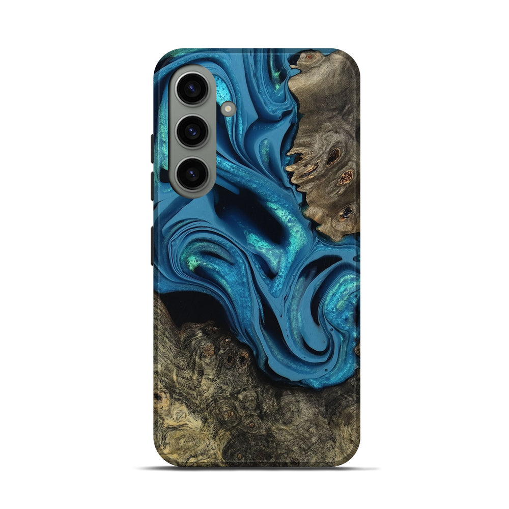 Our Live Edge cases are made from an amazing combination of stabilized wood burl and colored resin. Our stabilization process hardens the wood to protect against cracks and breaks. We do every step of the process at our shop in Northern Indiana. Perfectly fits the Galaxy S24.