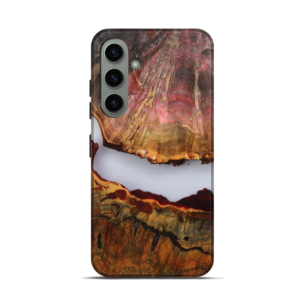 Our Live Edge cases are made from an amazing combination of stabilized wood burl and colored resin. Our stabilization process hardens the wood to protect against cracks and breaks. We do every step of the process at our shop in Northern Indiana. Perfectly fits the Galaxy S24.
