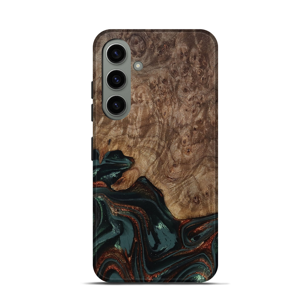Our Live Edge cases are made from an amazing combination of stabilized wood burl and colored resin. Our stabilization process hardens the wood to protect against cracks and breaks. We do every step of the process at our shop in Northern Indiana. Perfectly fits the Galaxy S24.