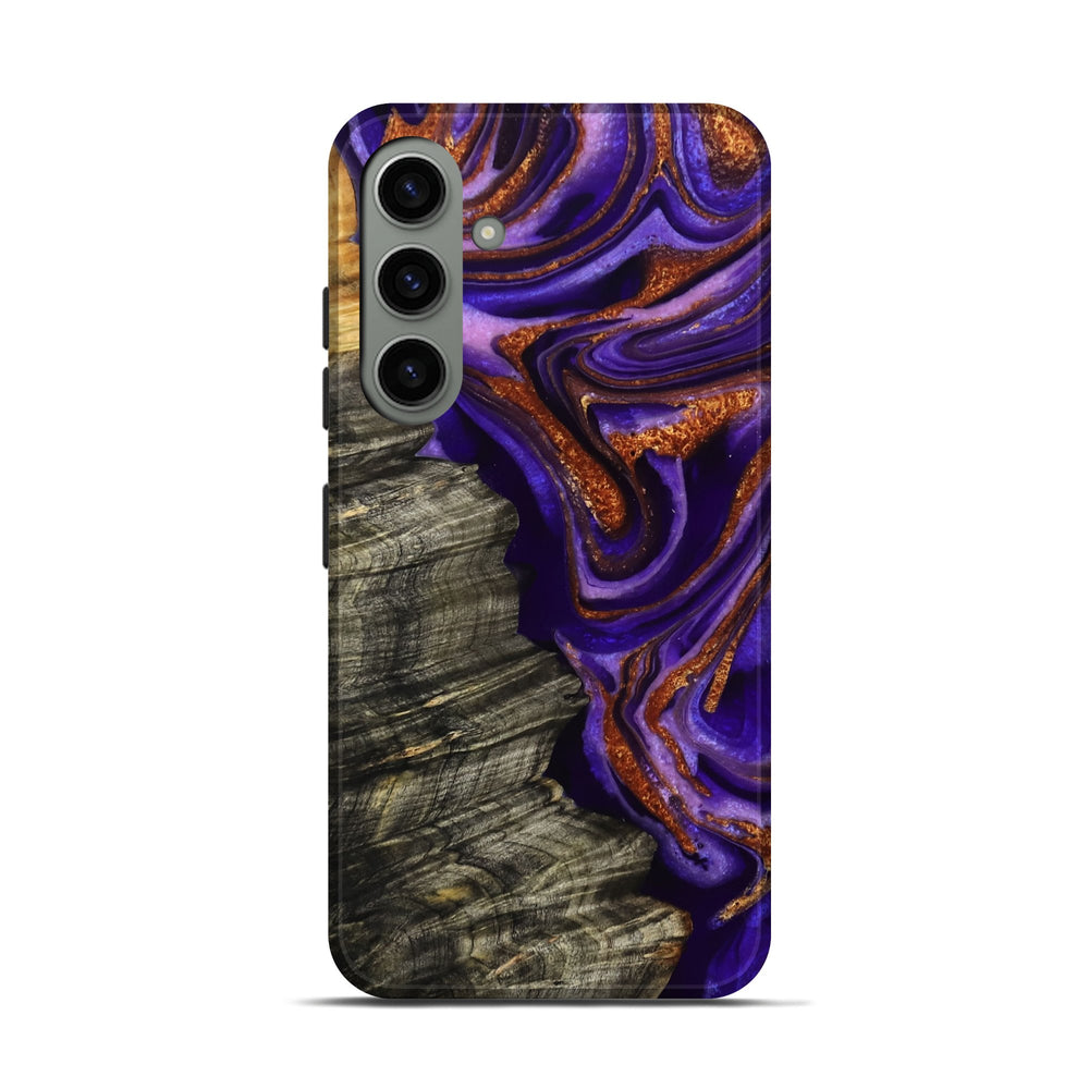 Our Live Edge cases are made from an amazing combination of stabilized wood burl and colored resin. Our stabilization process hardens the wood to protect against cracks and breaks. We do every step of the process at our shop in Northern Indiana. Perfectly fits the Galaxy S24.