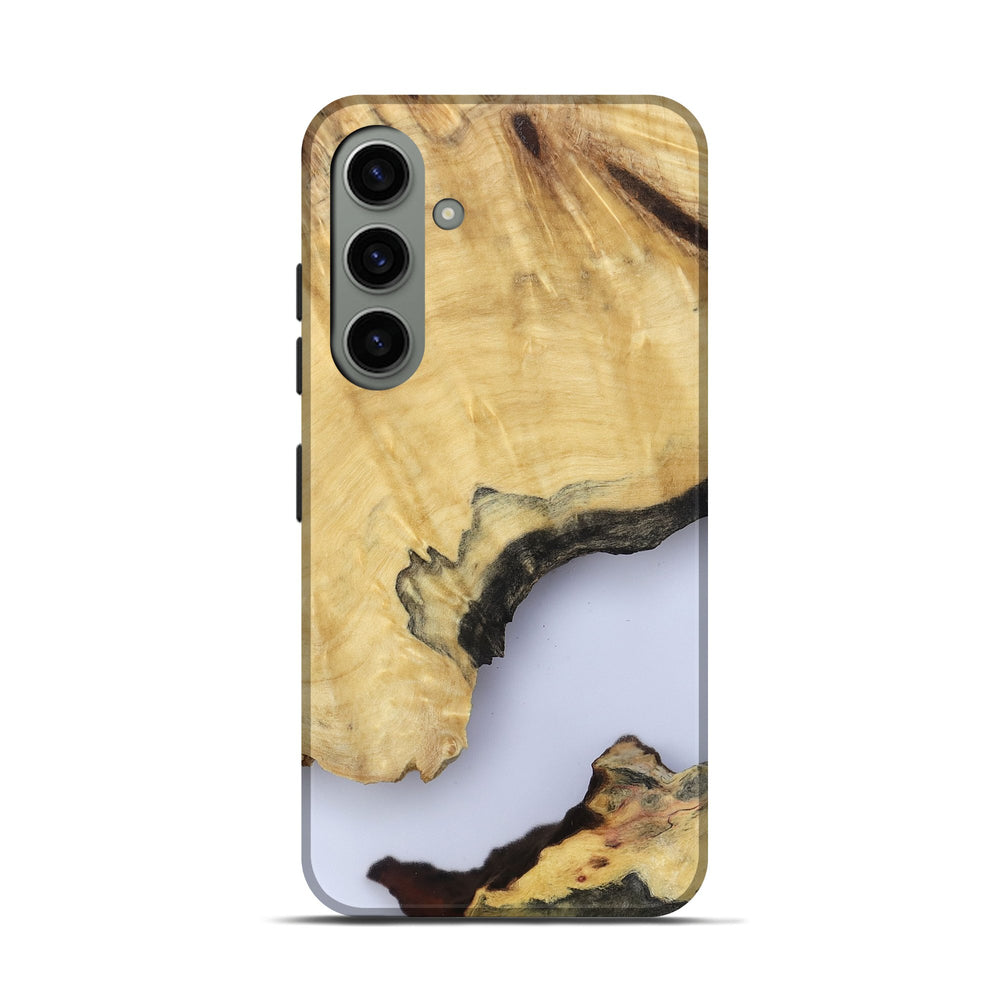 Our Live Edge cases are made from an amazing combination of stabilized wood burl and colored resin. Our stabilization process hardens the wood to protect against cracks and breaks. We do every step of the process at our shop in Northern Indiana. Perfectly fits the Galaxy S24.