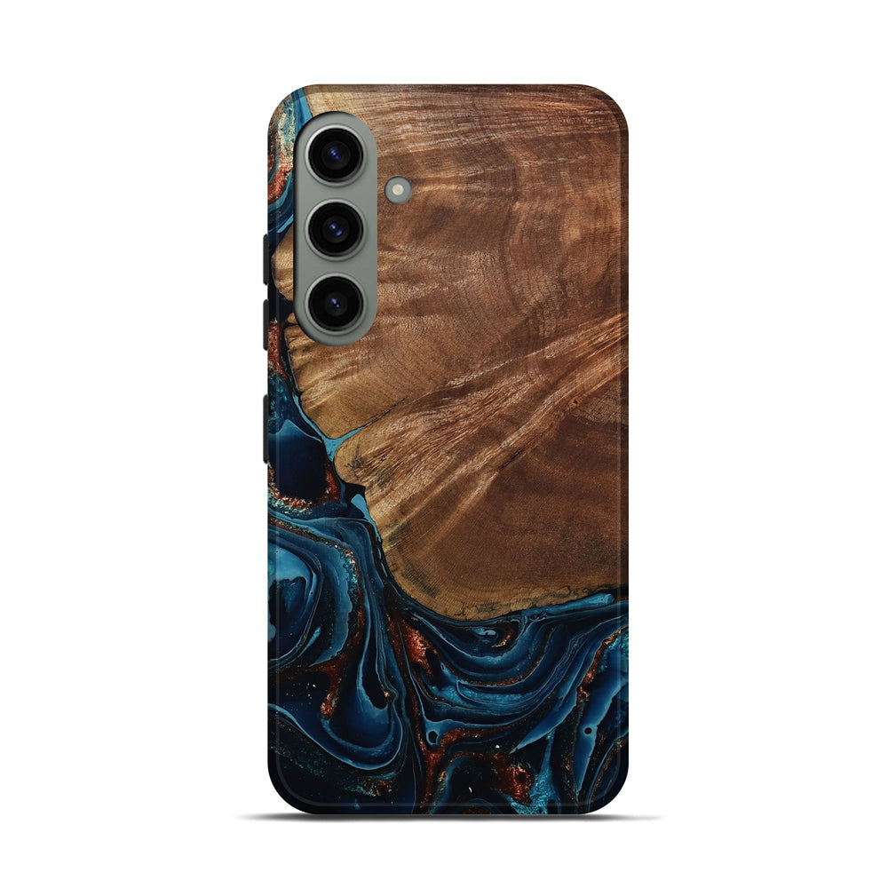 Our Live Edge cases are made from an amazing combination of stabilized wood burl and colored resin. Our stabilization process hardens the wood to protect against cracks and breaks. We do every step of the process at our shop in Northern Indiana. Perfectly fits the Galaxy S24.