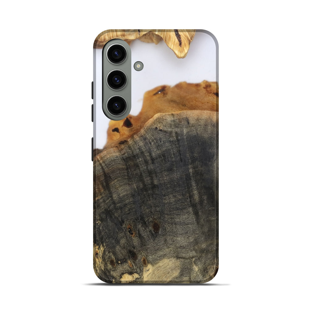 Our Live Edge cases are made from an amazing combination of stabilized wood burl and colored resin. Our stabilization process hardens the wood to protect against cracks and breaks. We do every step of the process at our shop in Northern Indiana. Perfectly fits the Galaxy S24.