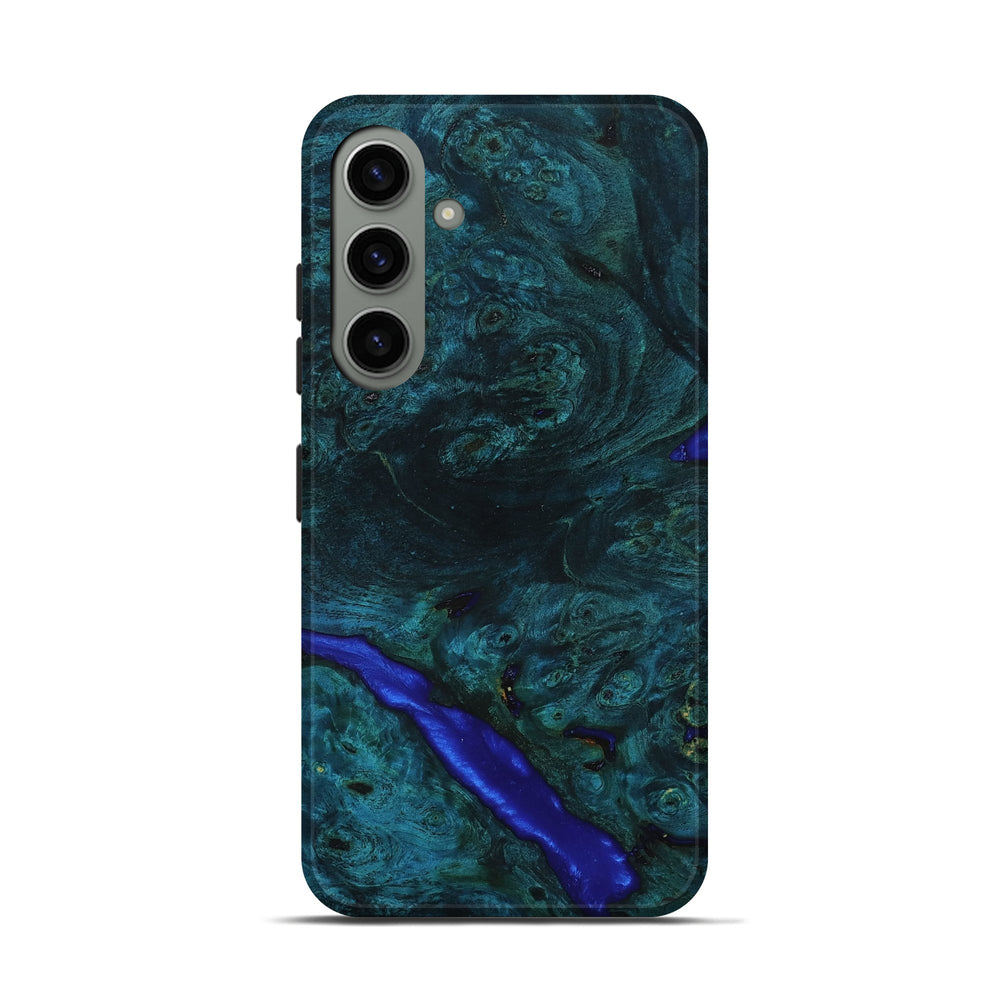 Our Live Edge cases are made from an amazing combination of stabilized wood burl and colored resin. Our stabilization process hardens the wood to protect against cracks and breaks. We do every step of the process at our shop in Northern Indiana. Perfectly fits the Galaxy S24.