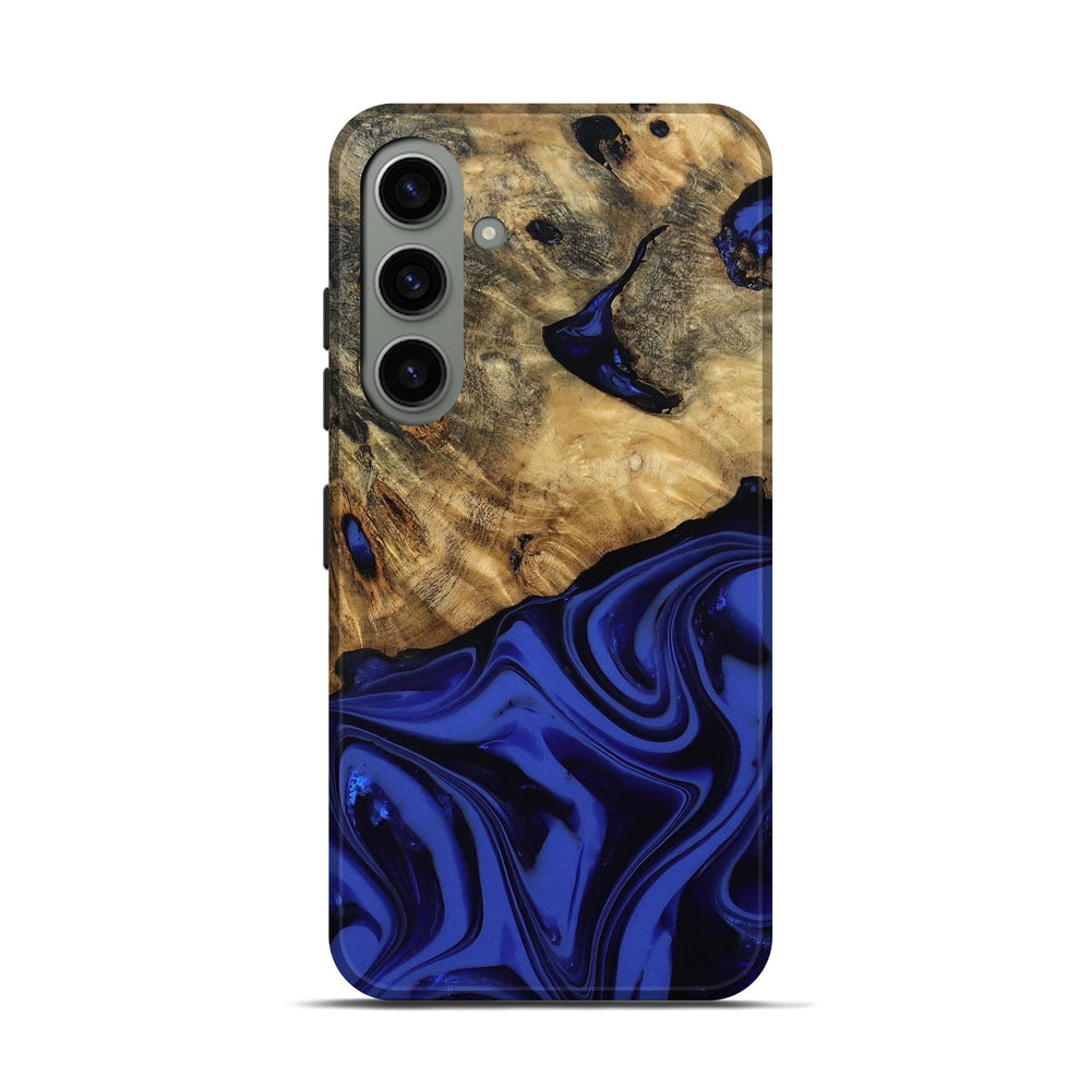 Our Live Edge cases are made from an amazing combination of stabilized wood burl and colored resin. Our stabilization process hardens the wood to protect against cracks and breaks. We do every step of the process at our shop in Northern Indiana. Perfectly fits the Galaxy S24.