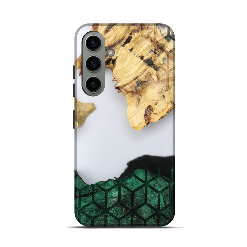 Our Live Edge cases are made from an amazing combination of stabilized wood burl and colored resin. Our stabilization process hardens the wood to protect against cracks and breaks. We do every step of the process at our shop in Northern Indiana. Perfectly fits the Galaxy S24.
