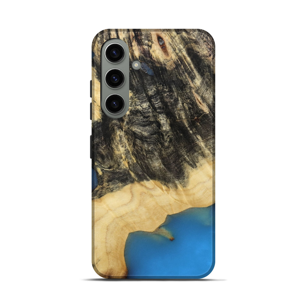 Our Live Edge cases are made from an amazing combination of stabilized wood burl and colored resin. Our stabilization process hardens the wood to protect against cracks and breaks. We do every step of the process at our shop in Northern Indiana. Perfectly fits the Galaxy S24.