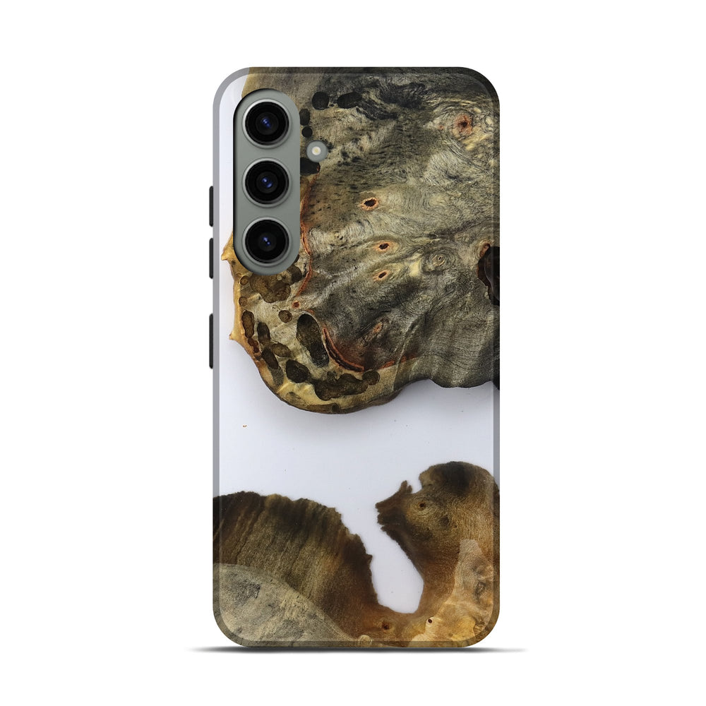 Our Live Edge cases are made from an amazing combination of stabilized wood burl and colored resin. Our stabilization process hardens the wood to protect against cracks and breaks. We do every step of the process at our shop in Northern Indiana. Perfectly fits the Galaxy S24.