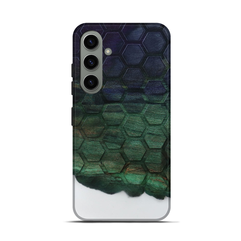 Our Live Edge cases are made from an amazing combination of stabilized wood burl and colored resin. Our stabilization process hardens the wood to protect against cracks and breaks. We do every step of the process at our shop in Northern Indiana. Perfectly fits the Galaxy S24.