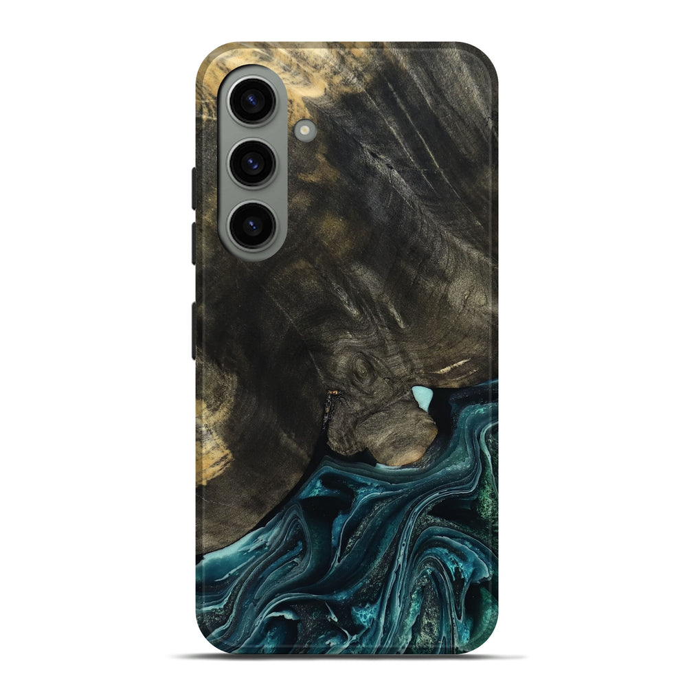 Our Live Edge cases are made from an amazing combination of stabilized wood burl and colored resin. Our stabilization process hardens the wood to protect against cracks and breaks. We do every step of the process at our shop in Northern Indiana. Perfectly fits the Galaxy S24 Plus.