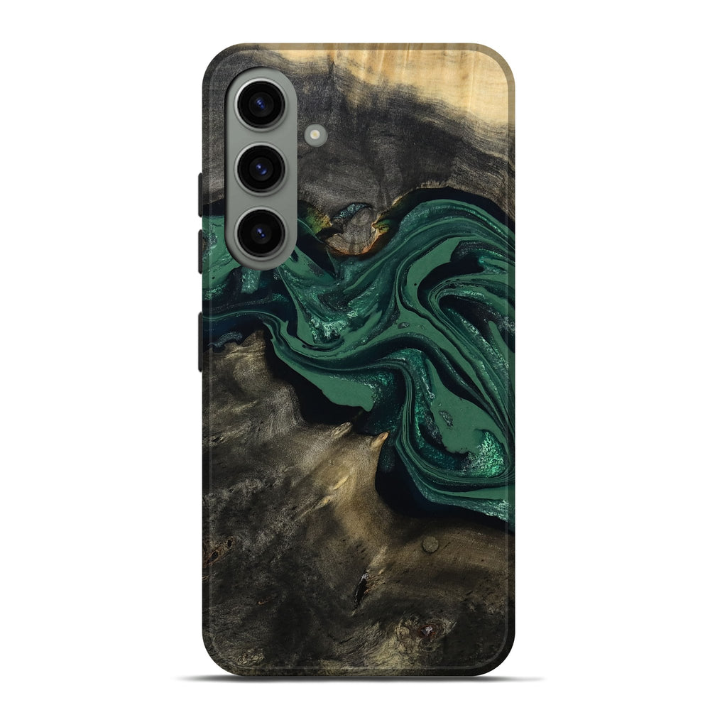 Our Live Edge cases are made from an amazing combination of stabilized wood burl and colored resin. Our stabilization process hardens the wood to protect against cracks and breaks. We do every step of the process at our shop in Northern Indiana. Perfectly fits the Galaxy S24 Plus.