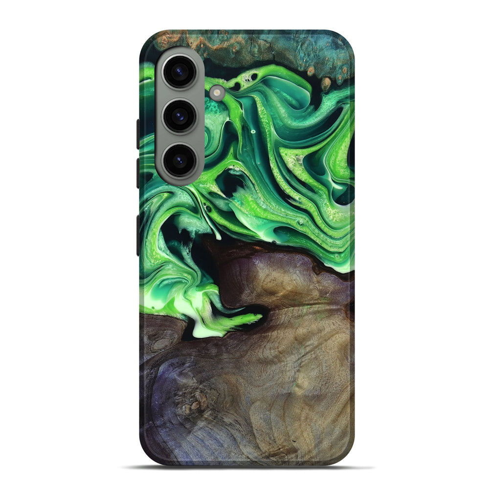 Our Live Edge cases are made from an amazing combination of stabilized wood burl and colored resin. Our stabilization process hardens the wood to protect against cracks and breaks. We do every step of the process at our shop in Northern Indiana. Perfectly fits the Galaxy S24 Plus.