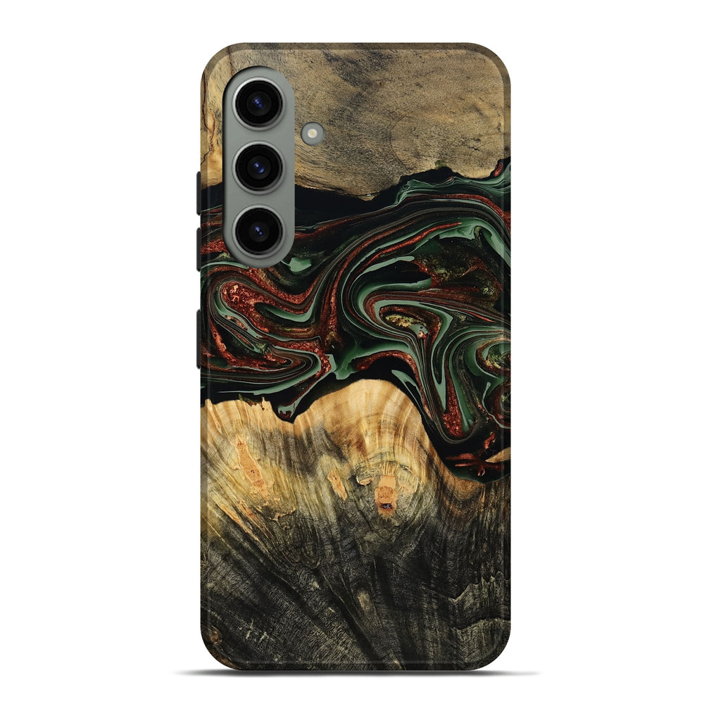 Our Live Edge cases are made from an amazing combination of stabilized wood burl and colored resin. Our stabilization process hardens the wood to protect against cracks and breaks. We do every step of the process at our shop in Northern Indiana. Perfectly fits the Galaxy S24 Plus.