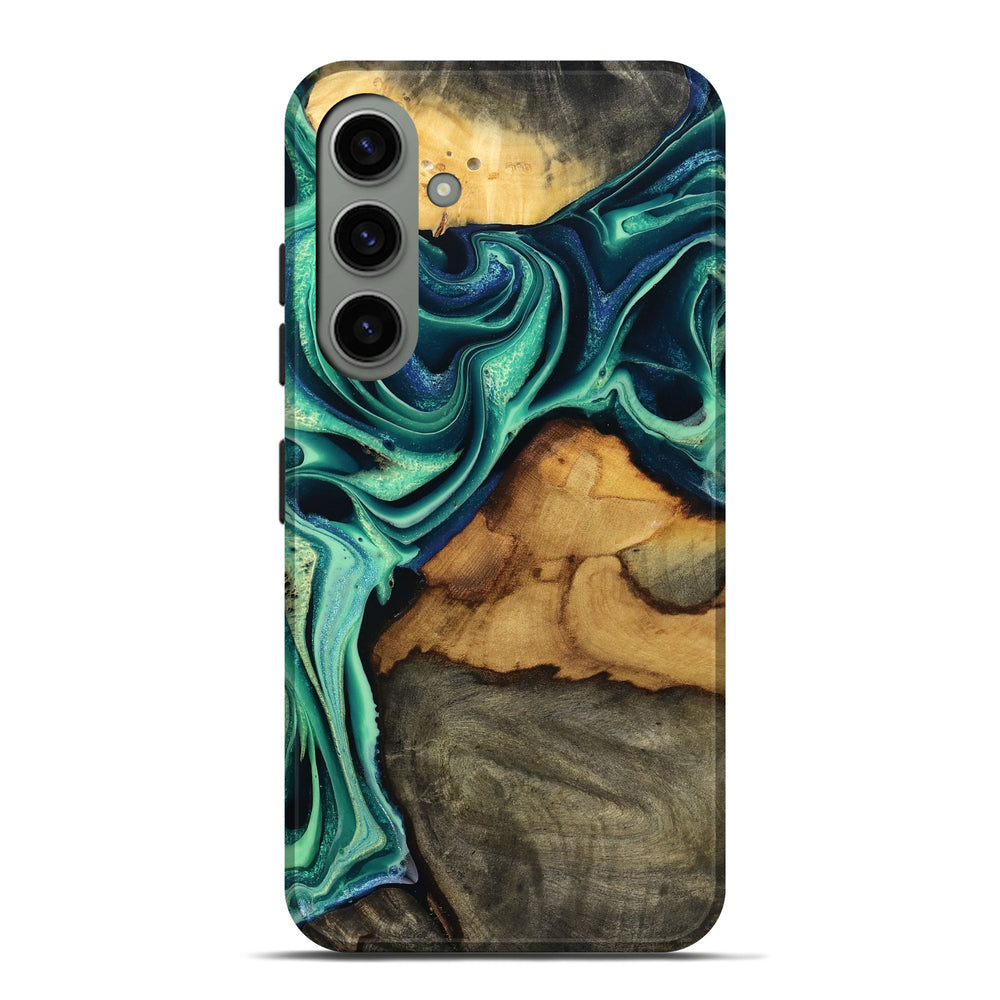 Our Live Edge cases are made from an amazing combination of stabilized wood burl and colored resin. Our stabilization process hardens the wood to protect against cracks and breaks. We do every step of the process at our shop in Northern Indiana. Perfectly fits the Galaxy S24 Plus.