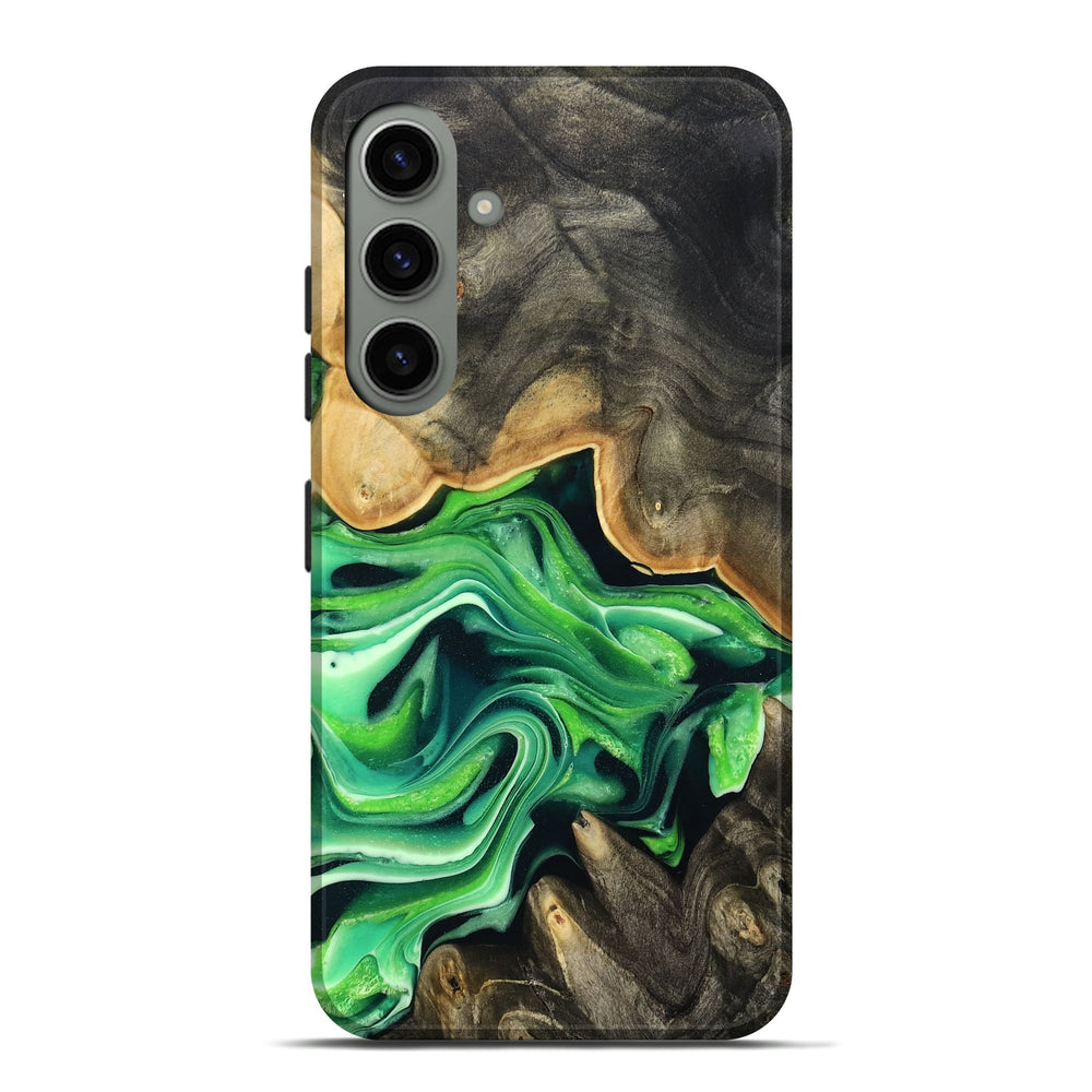 Our Live Edge cases are made from an amazing combination of stabilized wood burl and colored resin. Our stabilization process hardens the wood to protect against cracks and breaks. We do every step of the process at our shop in Northern Indiana. Perfectly fits the Galaxy S24 Plus.