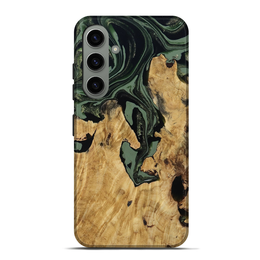 Our Live Edge cases are made from an amazing combination of stabilized wood burl and colored resin. Our stabilization process hardens the wood to protect against cracks and breaks. We do every step of the process at our shop in Northern Indiana. Perfectly fits the Galaxy S24 Plus.