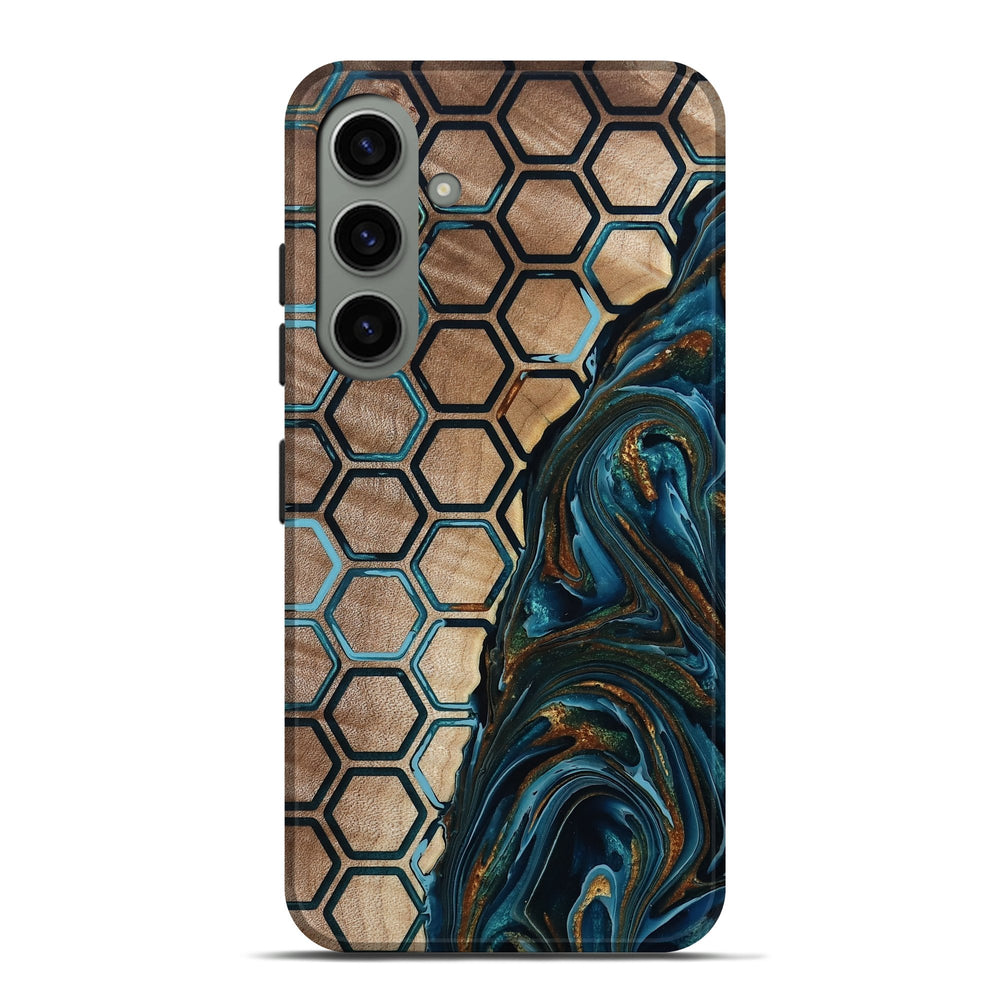Our Live Edge cases are made from an amazing combination of stabilized wood burl and colored resin. Our stabilization process hardens the wood to protect against cracks and breaks. We do every step of the process at our shop in Northern Indiana. Perfectly fits the Galaxy S24 Plus.