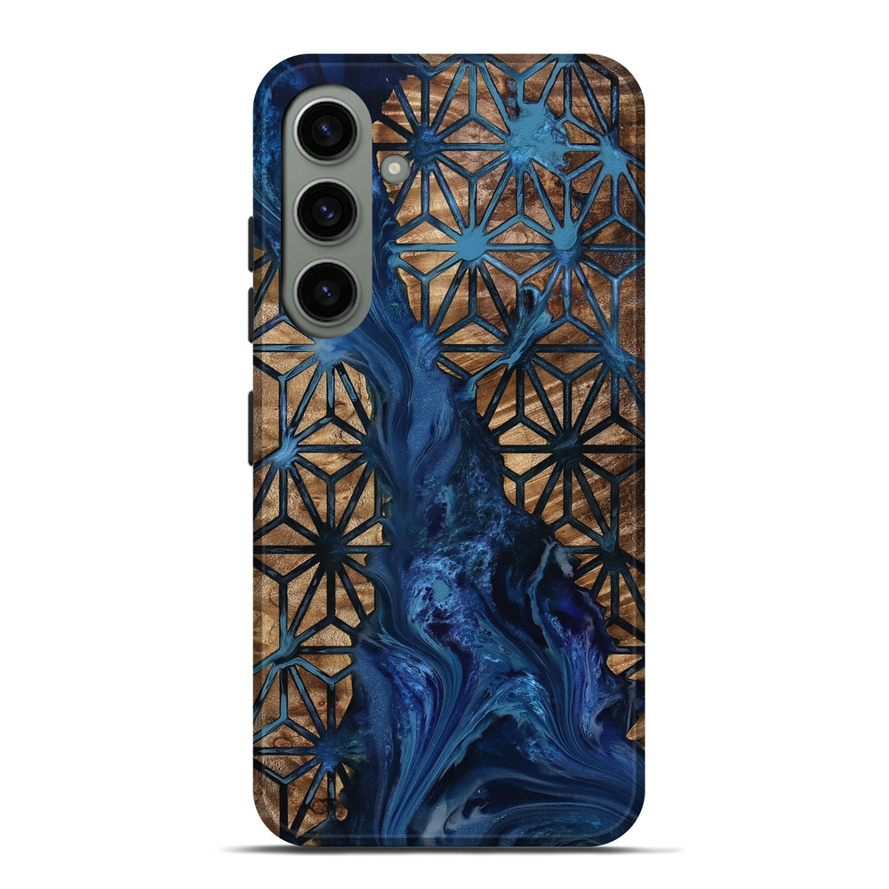 Our Live Edge cases are made from an amazing combination of stabilized wood burl and colored resin. Our stabilization process hardens the wood to protect against cracks and breaks. We do every step of the process at our shop in Northern Indiana. Perfectly fits the Galaxy S24 Plus.