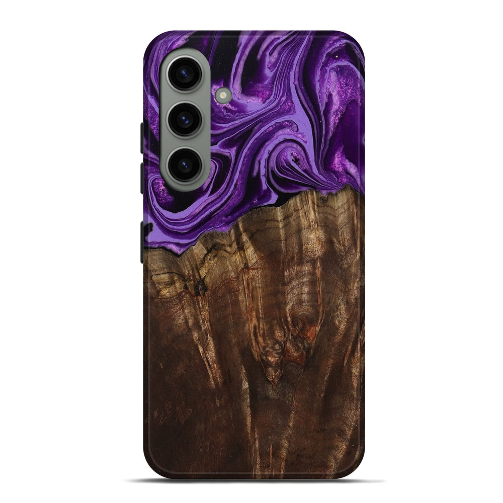 Our Live Edge cases are made from an amazing combination of stabilized wood burl and colored resin. Our stabilization process hardens the wood to protect against cracks and breaks. We do every step of the process at our shop in Northern Indiana. Perfectly fits the Galaxy S24 Plus.