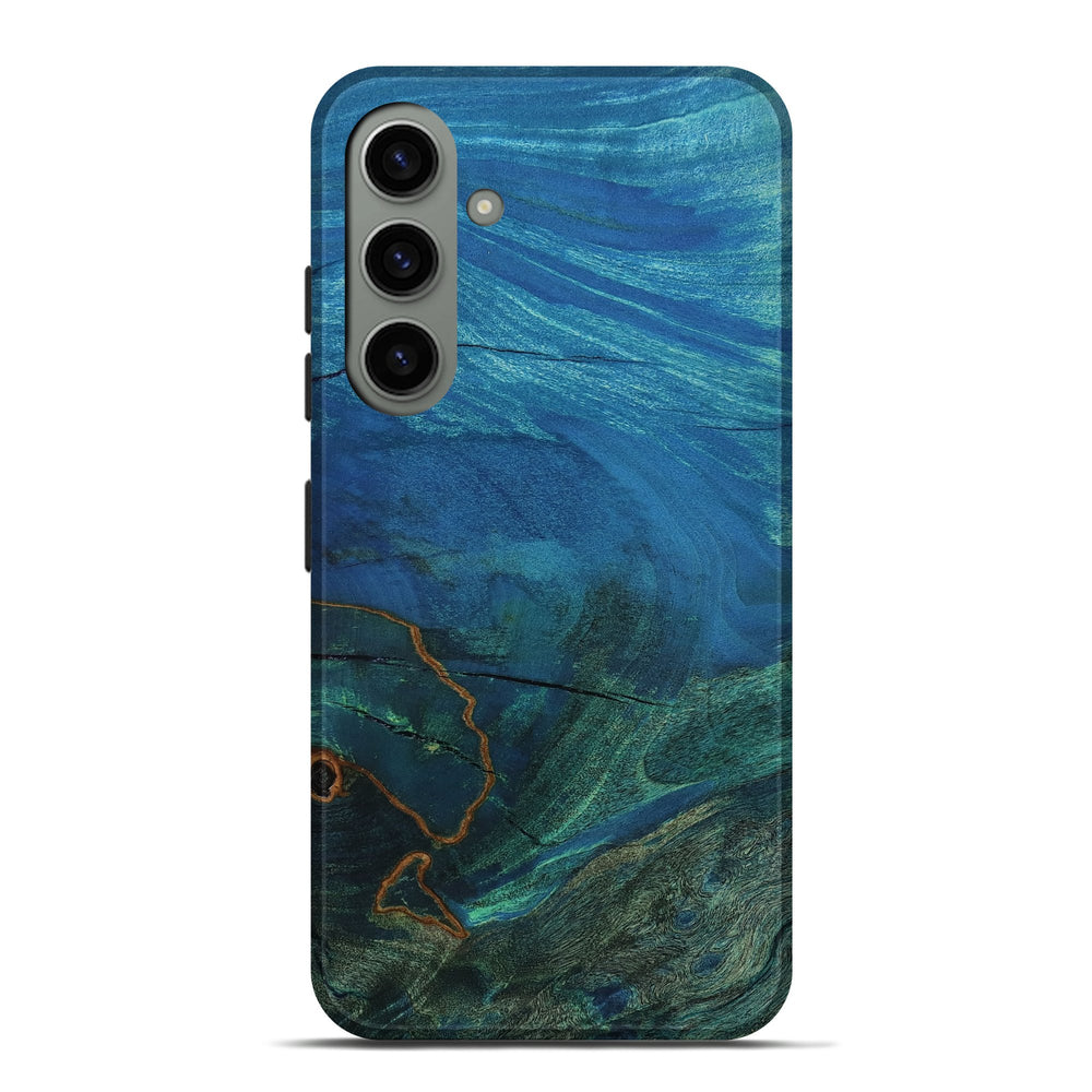 Our Live Edge cases are made from an amazing combination of stabilized wood burl and colored resin. Our stabilization process hardens the wood to protect against cracks and breaks. We do every step of the process at our shop in Northern Indiana. Perfectly fits the Galaxy S24 Plus.
