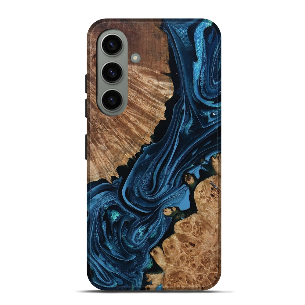 Our Live Edge cases are made from an amazing combination of stabilized wood burl and colored resin. Our stabilization process hardens the wood to protect against cracks and breaks. We do every step of the process at our shop in Northern Indiana. Perfectly fits the Galaxy S24 Plus.