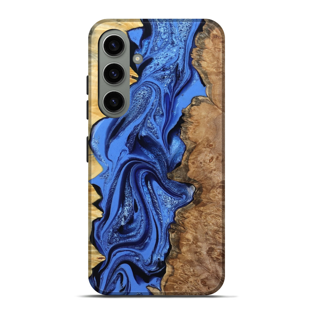 Our Live Edge cases are made from an amazing combination of stabilized wood burl and colored resin. Our stabilization process hardens the wood to protect against cracks and breaks. We do every step of the process at our shop in Northern Indiana. Perfectly fits the Galaxy S24 Plus.