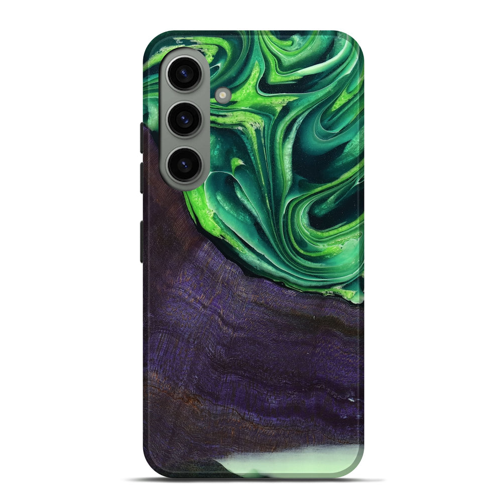 Our Live Edge cases are made from an amazing combination of stabilized wood burl and colored resin. Our stabilization process hardens the wood to protect against cracks and breaks. We do every step of the process at our shop in Northern Indiana. Perfectly fits the Galaxy S24 Plus.