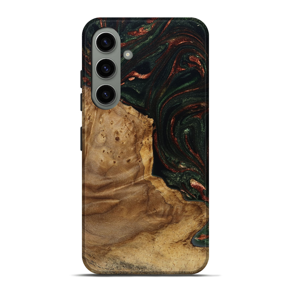 Our Live Edge cases are made from an amazing combination of stabilized wood burl and colored resin. Our stabilization process hardens the wood to protect against cracks and breaks. We do every step of the process at our shop in Northern Indiana. Perfectly fits the Galaxy S24 Plus.