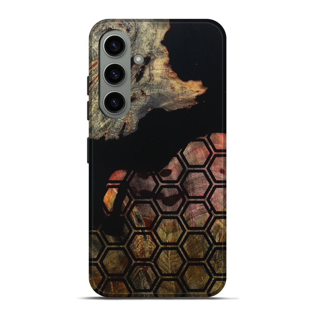 Our Live Edge cases are made from an amazing combination of stabilized wood burl and colored resin. Our stabilization process hardens the wood to protect against cracks and breaks. We do every step of the process at our shop in Northern Indiana. Perfectly fits the Galaxy S24 Plus.