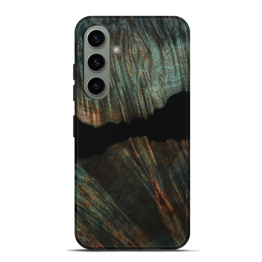 Our Live Edge cases are made from an amazing combination of stabilized wood burl and colored resin. Our stabilization process hardens the wood to protect against cracks and breaks. We do every step of the process at our shop in Northern Indiana. Perfectly fits the Galaxy S24 Plus.