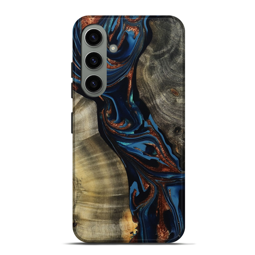 Our Live Edge cases are made from an amazing combination of stabilized wood burl and colored resin. Our stabilization process hardens the wood to protect against cracks and breaks. We do every step of the process at our shop in Northern Indiana. Perfectly fits the Galaxy S24 Plus.