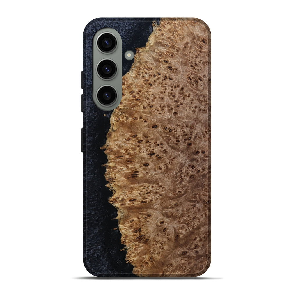 Our Live Edge cases are made from an amazing combination of stabilized wood burl and colored resin. Our stabilization process hardens the wood to protect against cracks and breaks. We do every step of the process at our shop in Northern Indiana. Perfectly fits the Galaxy S24 Plus.