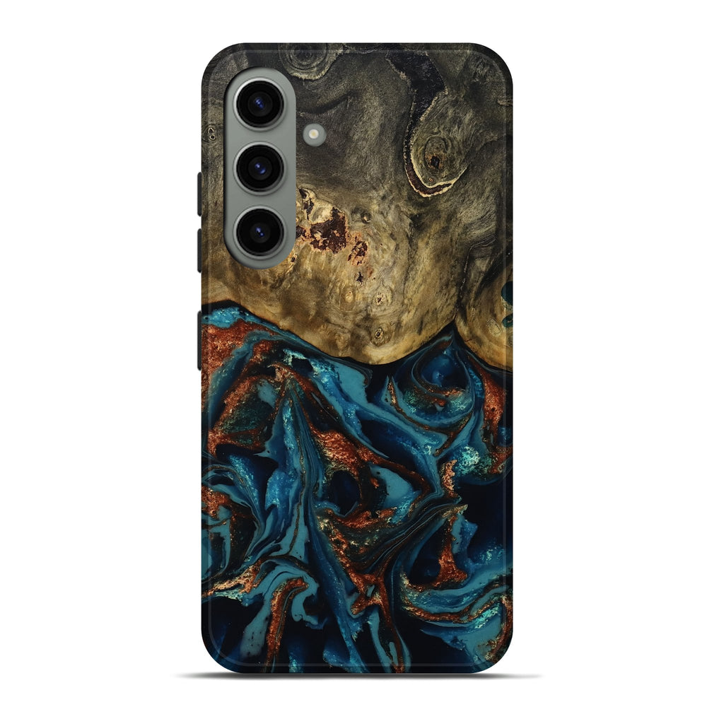 Our Live Edge cases are made from an amazing combination of stabilized wood burl and colored resin. Our stabilization process hardens the wood to protect against cracks and breaks. We do every step of the process at our shop in Northern Indiana. Perfectly fits the Galaxy S24 Plus.