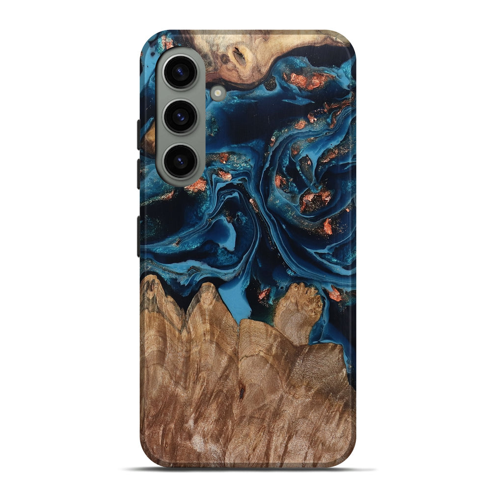Our Live Edge cases are made from an amazing combination of stabilized wood burl and colored resin. Our stabilization process hardens the wood to protect against cracks and breaks. We do every step of the process at our shop in Northern Indiana. Perfectly fits the Galaxy S24 Plus.