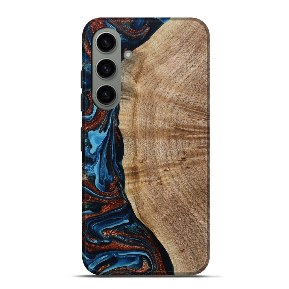 Our Live Edge cases are made from an amazing combination of stabilized wood burl and colored resin. Our stabilization process hardens the wood to protect against cracks and breaks. We do every step of the process at our shop in Northern Indiana. Perfectly fits the Galaxy S24 Plus.