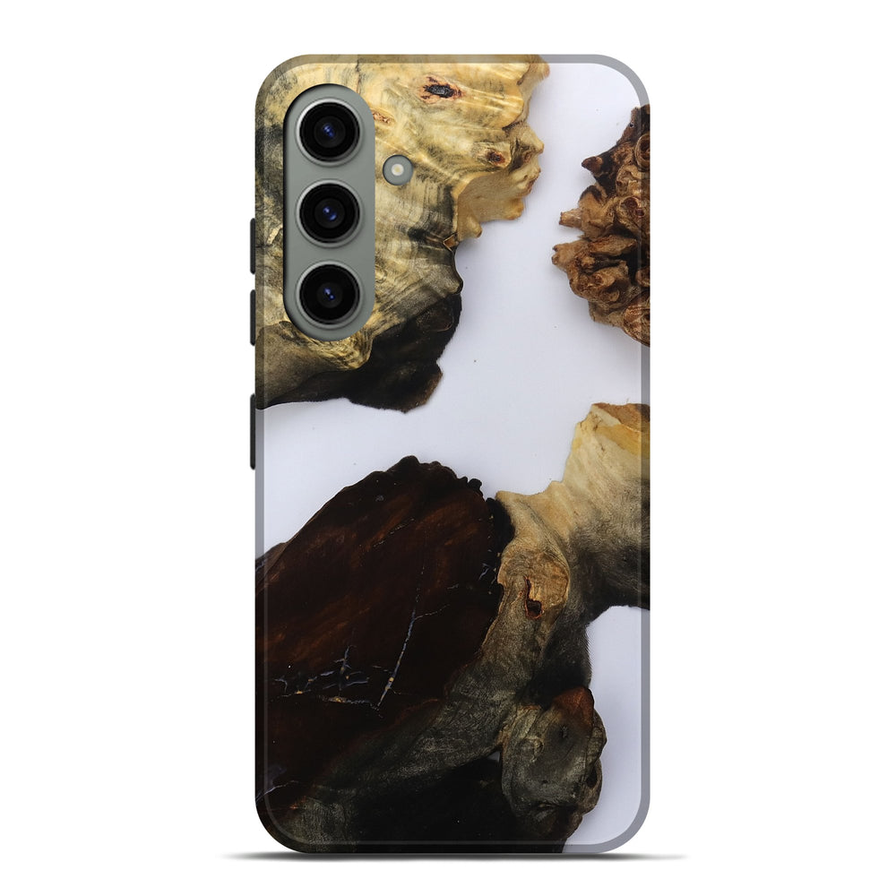 Our Live Edge cases are made from an amazing combination of stabilized wood burl and colored resin. Our stabilization process hardens the wood to protect against cracks and breaks. We do every step of the process at our shop in Northern Indiana. Perfectly fits the Galaxy S24 Plus.