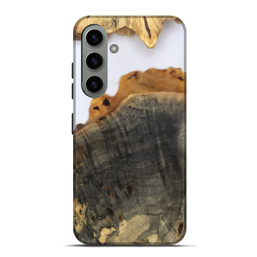 Our Live Edge cases are made from an amazing combination of stabilized wood burl and colored resin. Our stabilization process hardens the wood to protect against cracks and breaks. We do every step of the process at our shop in Northern Indiana. Perfectly fits the Galaxy S24 Plus.