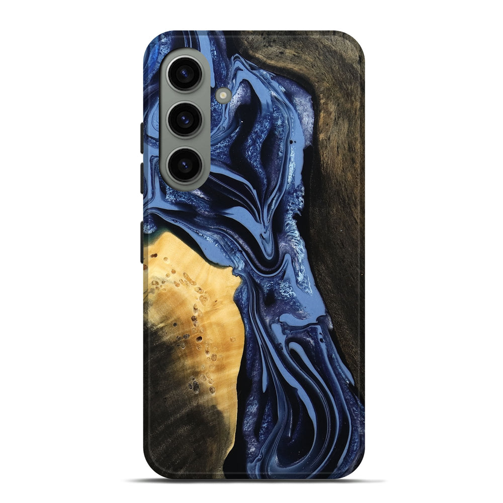 Our Live Edge cases are made from an amazing combination of stabilized wood burl and colored resin. Our stabilization process hardens the wood to protect against cracks and breaks. We do every step of the process at our shop in Northern Indiana. Perfectly fits the Galaxy S24 Plus.