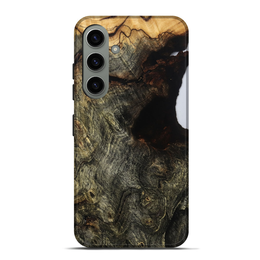 Our Live Edge cases are made from an amazing combination of stabilized wood burl and colored resin. Our stabilization process hardens the wood to protect against cracks and breaks. We do every step of the process at our shop in Northern Indiana. Perfectly fits the Galaxy S24 Plus.
