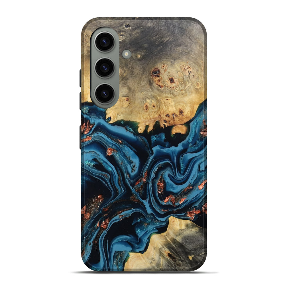 Our Live Edge cases are made from an amazing combination of stabilized wood burl and colored resin. Our stabilization process hardens the wood to protect against cracks and breaks. We do every step of the process at our shop in Northern Indiana. Perfectly fits the Galaxy S24 Plus.