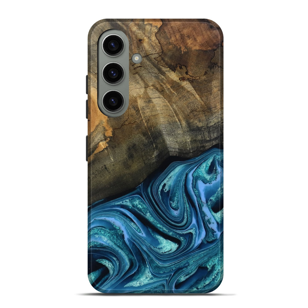 Our Live Edge cases are made from an amazing combination of stabilized wood burl and colored resin. Our stabilization process hardens the wood to protect against cracks and breaks. We do every step of the process at our shop in Northern Indiana. Perfectly fits the Galaxy S24 Plus.