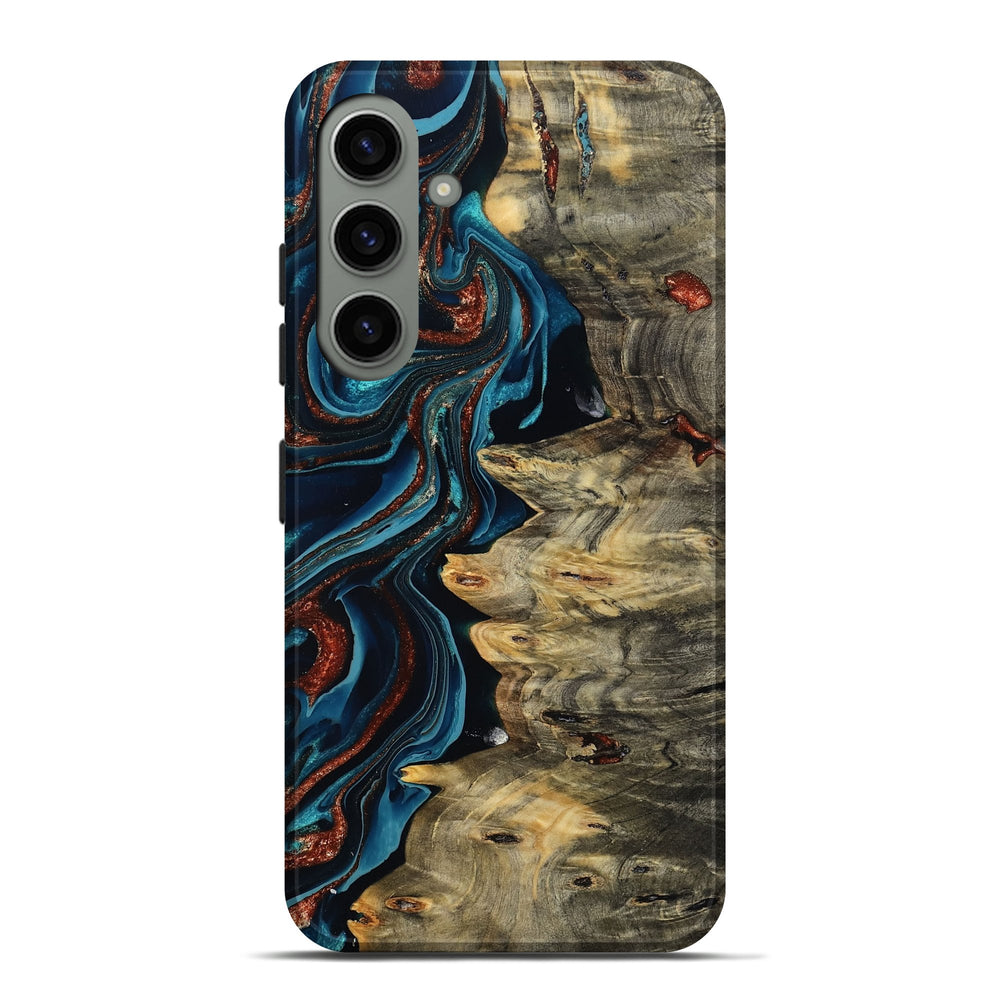 Our Live Edge cases are made from an amazing combination of stabilized wood burl and colored resin. Our stabilization process hardens the wood to protect against cracks and breaks. We do every step of the process at our shop in Northern Indiana. Perfectly fits the Galaxy S24 Plus.
