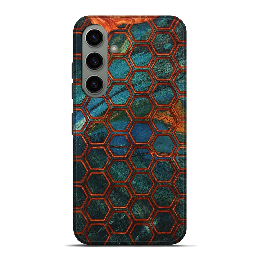 Our Live Edge cases are made from an amazing combination of stabilized wood burl and colored resin. Our stabilization process hardens the wood to protect against cracks and breaks. We do every step of the process at our shop in Northern Indiana. Perfectly fits the Galaxy S24 Plus.