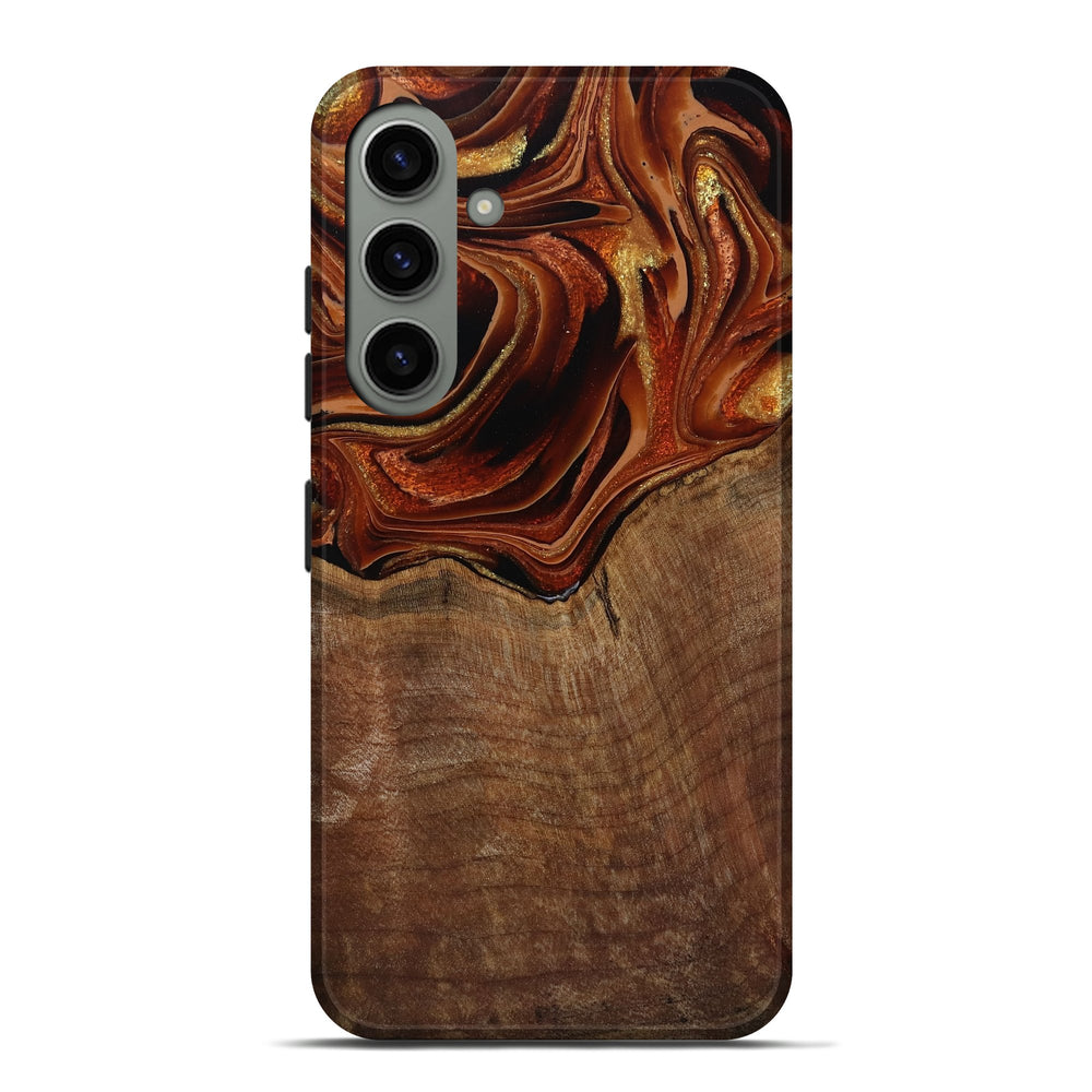 Our Live Edge cases are made from an amazing combination of stabilized wood burl and colored resin. Our stabilization process hardens the wood to protect against cracks and breaks. We do every step of the process at our shop in Northern Indiana. Perfectly fits the Galaxy S24 Plus.