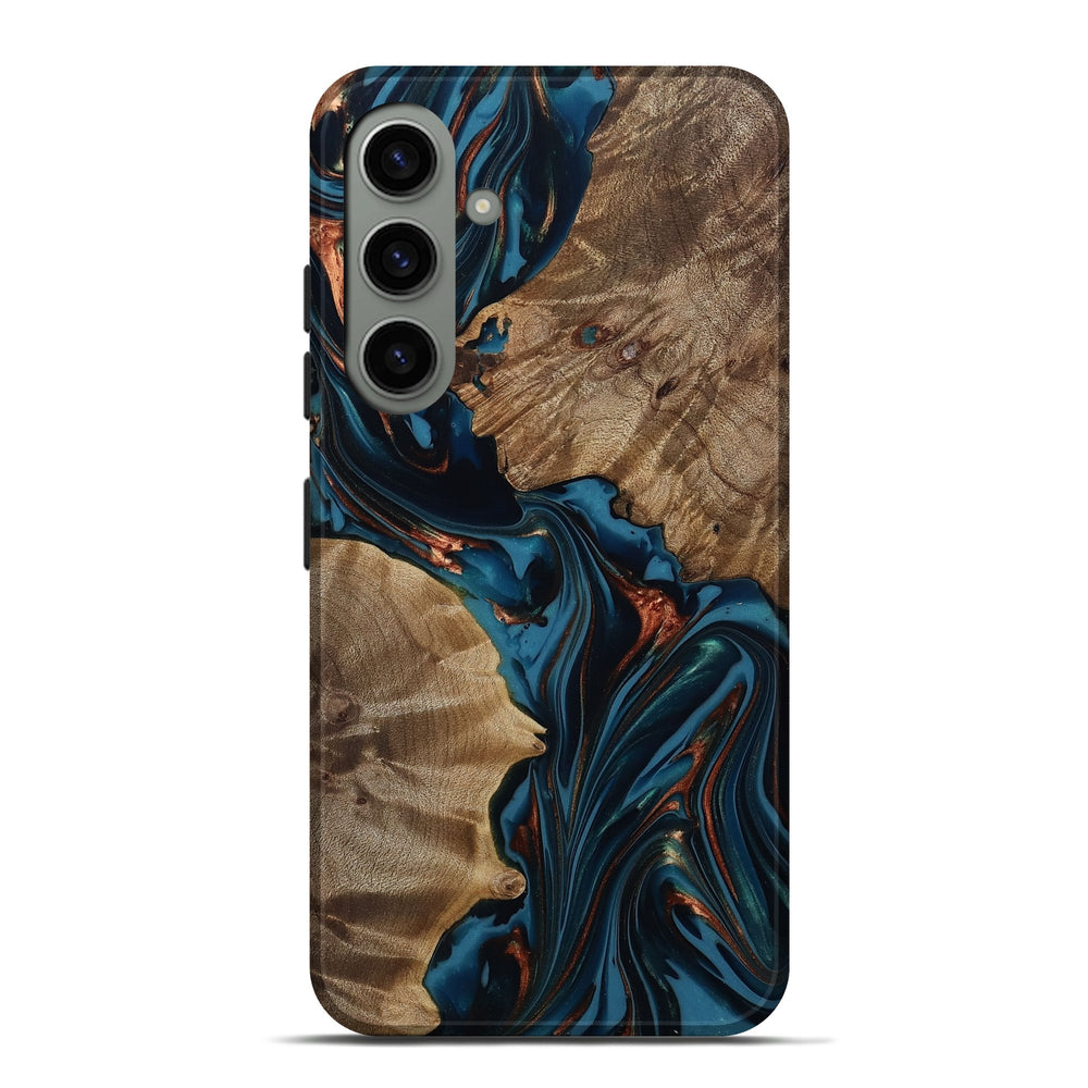 Our Live Edge cases are made from an amazing combination of stabilized wood burl and colored resin. Our stabilization process hardens the wood to protect against cracks and breaks. We do every step of the process at our shop in Northern Indiana. Perfectly fits the Galaxy S24 Plus.