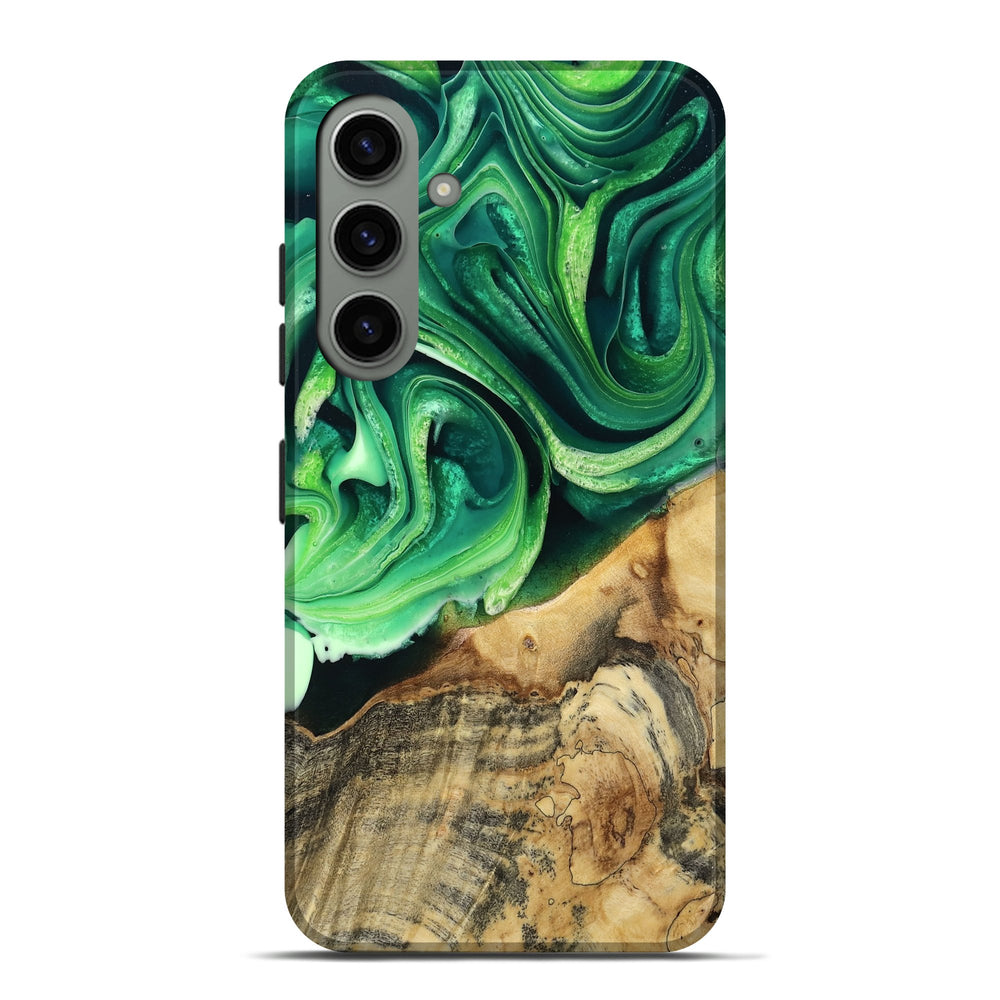 Our Live Edge cases are made from an amazing combination of stabilized wood burl and colored resin. Our stabilization process hardens the wood to protect against cracks and breaks. We do every step of the process at our shop in Northern Indiana. Perfectly fits the Galaxy S24 Plus.